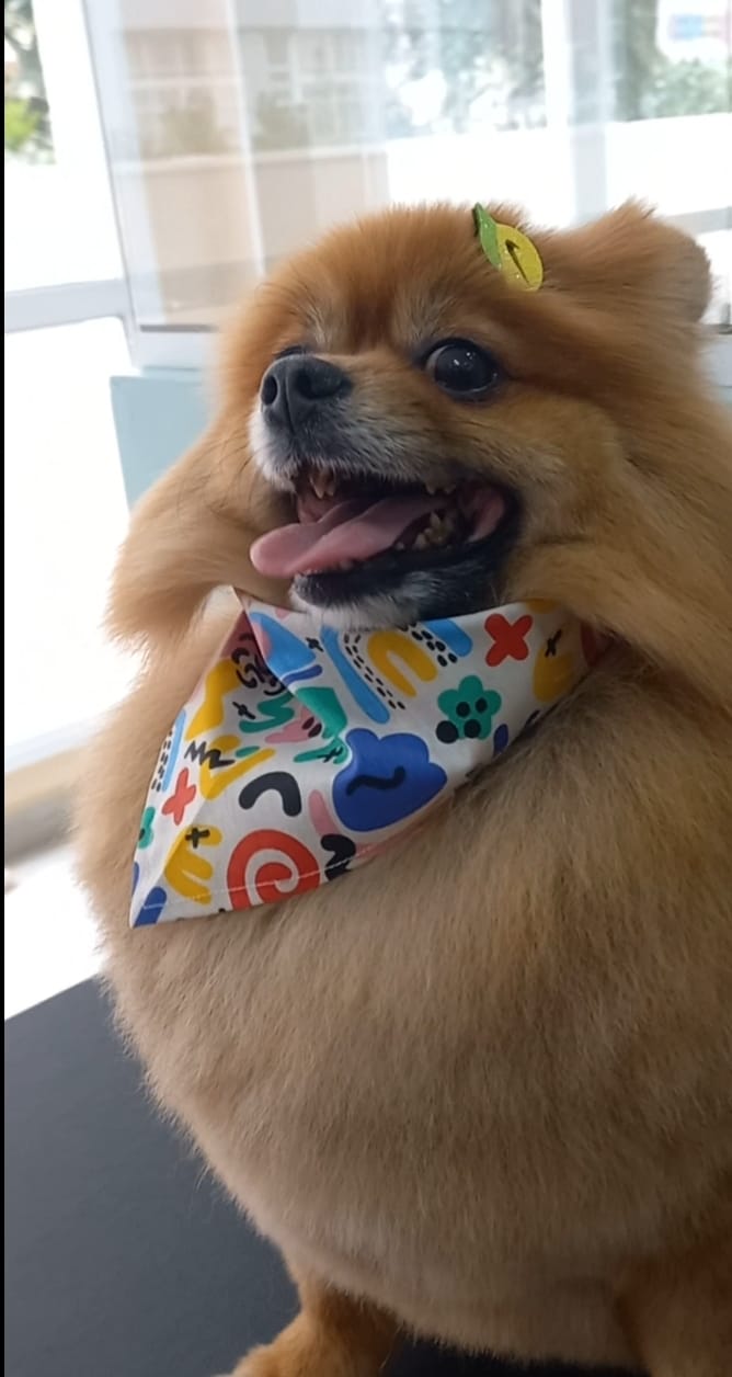 Serviço detalhado que une técnica e estética. Em raças específicas, como o Spitz Alemão, a tosa pode ser realizada totalmente na tesoura, destacando ainda mais a beleza e o estilo característico do pet.